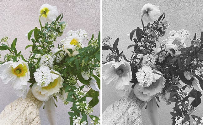 I absolutely loved the scene in the book where she’s in an inner dialogue with herself about what type of bouquet she should buy to take to her friend’s place to congratulate them on their newborn’s arrival. She goes back and forth, contemplating what’s appropriate vs. what’s not, and lands on a massive bouquet of peonies. She immediately regrets it afterwards, arguing they are bulbous and offensive. To edit this bouquet choice for Ariane, I pulled the most lavish, airy bouquet I made during peak poppy and spiera season. If you are aware of floral prices, you’ll know each of these ingredients are considered luxe. Their seasons are also short so they feel like a rarity.