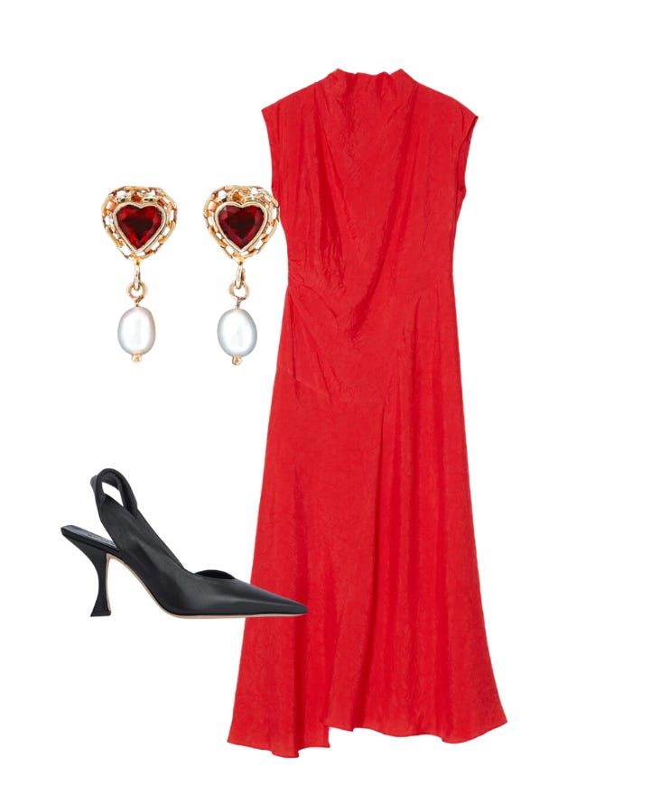 She’s obsessed with love, is assertive when she wants to be, and carries an air of bourgeois with every step she takes. This high neck dress from Atelier Delphine feels like something a modern Betty Draper would wear. Understated and sophisticated. The dainty queen of hearts earrings are also too perfect for someone who won’t stop talking about love. And they kind of feel devious all at once?! How appropriate for her character.
